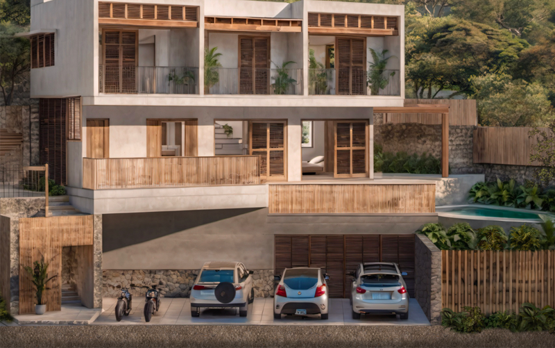 Architectural project comprising five apartments, featuring one or two bedrooms. Located in Punta Zicatela, an ideal location for coastal exploration.
